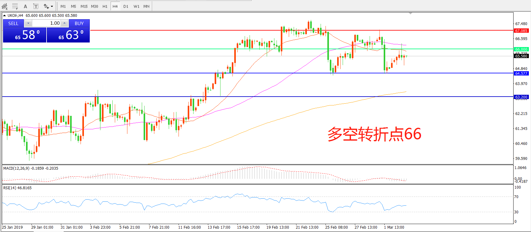 交易策略:在66.00之下看跌,目标64.50 63.00