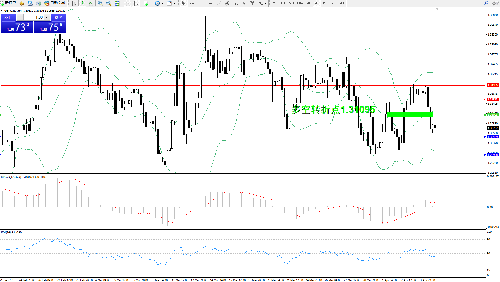 交易策略:1.31095下方看跌,目标1.30489、1.29998