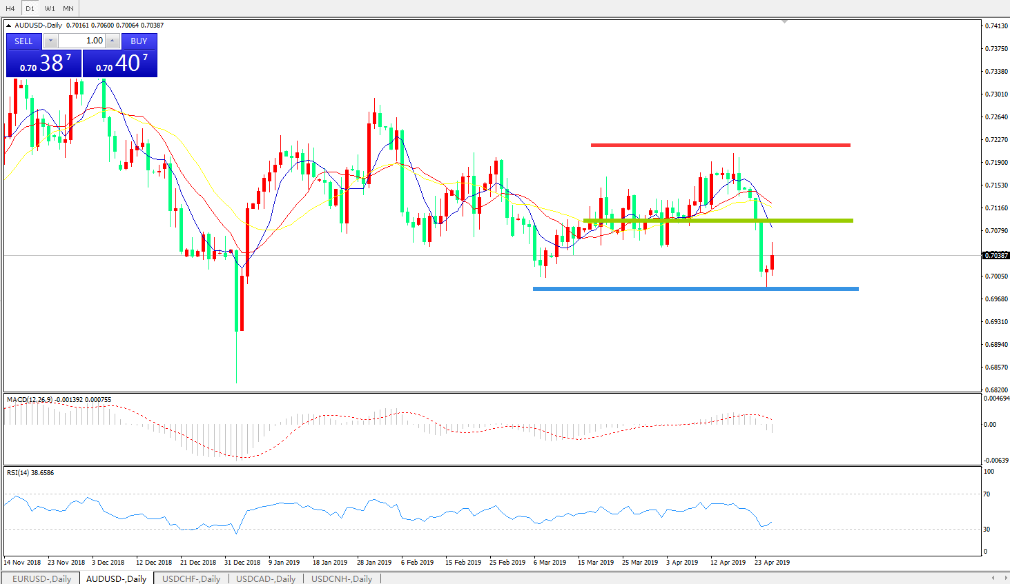 交易策略:在0.7110之下,看跌,目标价位为0.7000,然后为0.6920。