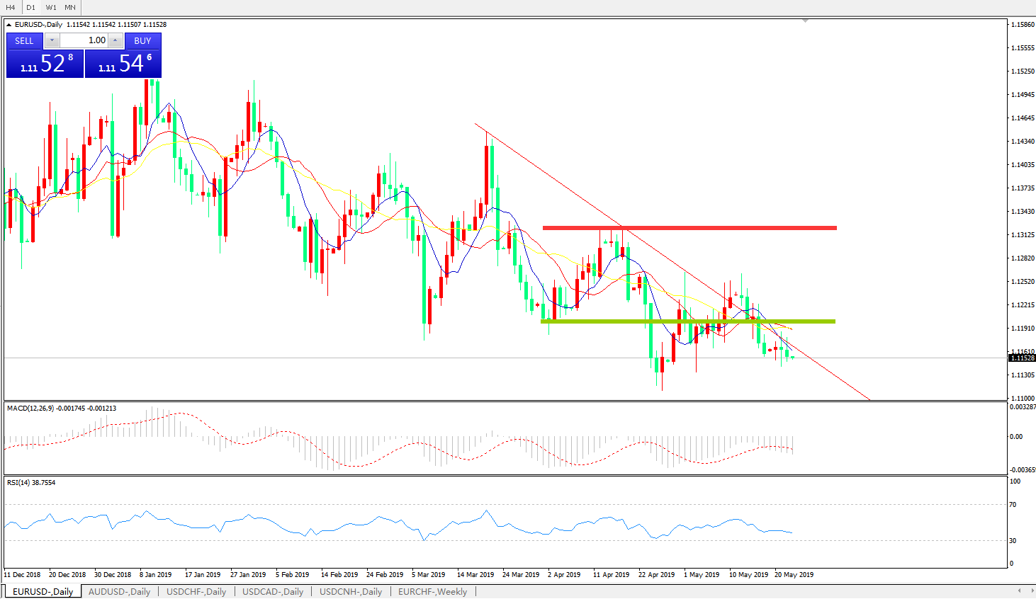 交易策略:在1.1200之下,看跌,目标价位为 1.1100,然后为1 .1030