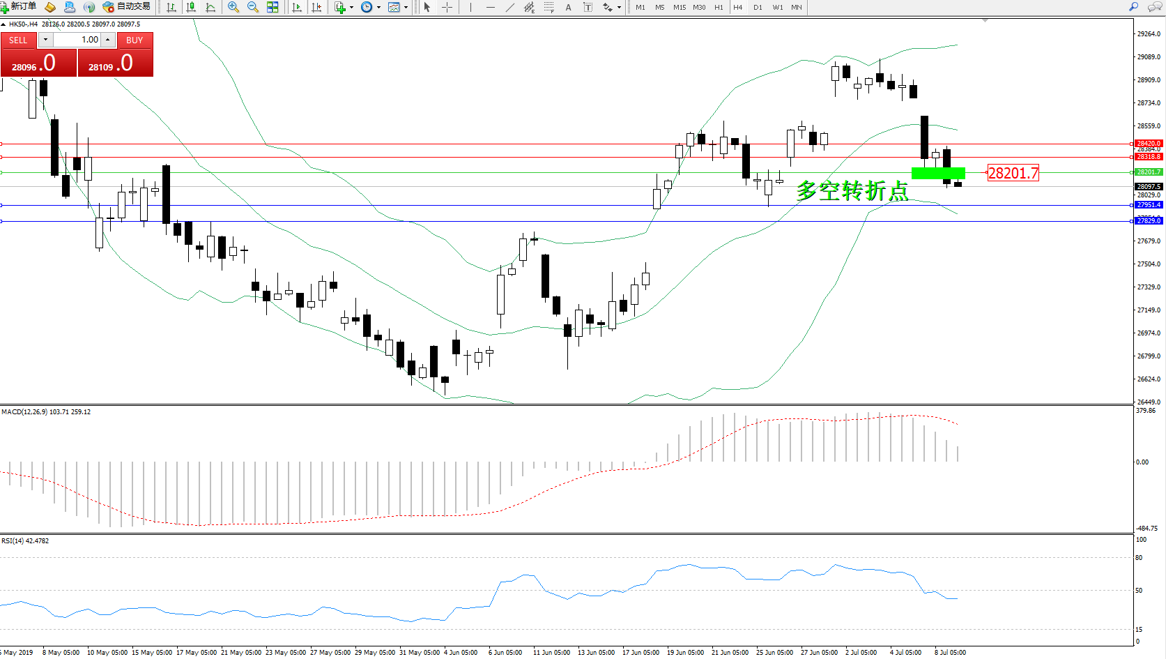 香港恒生指数7月9日(周二)收盘下跌215.41点,跌幅0.76%,报28116.28点;恒指低开低走,跌幅不断扩大。美国股市表现受挫,但港股ADR指数全日靠稳,昨日港股ADR表现就略强于美股,恒指夜期高水75点,投资者对后市也是较为看好。市场将静待周三结果,预计今日恒指或将小幅高开,在当前点位附近震荡盘整。