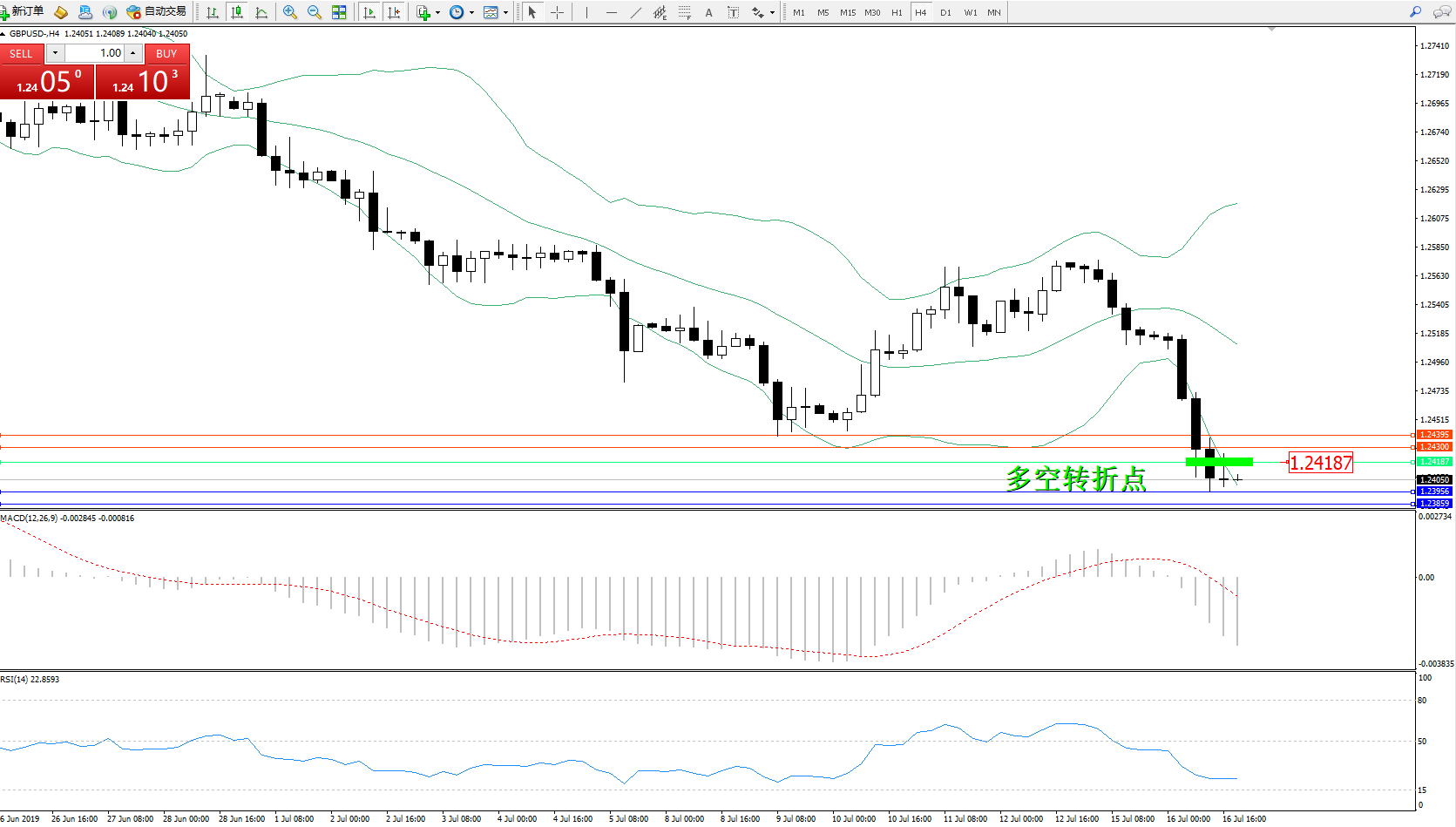交易策略:1.24187下方看跌,目标1.23956、1.23859