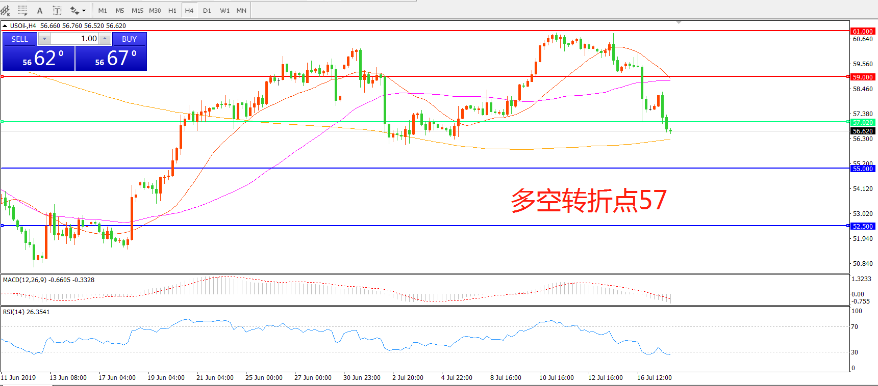交易策略:在57.00之下看跌,目标55.00 52.50