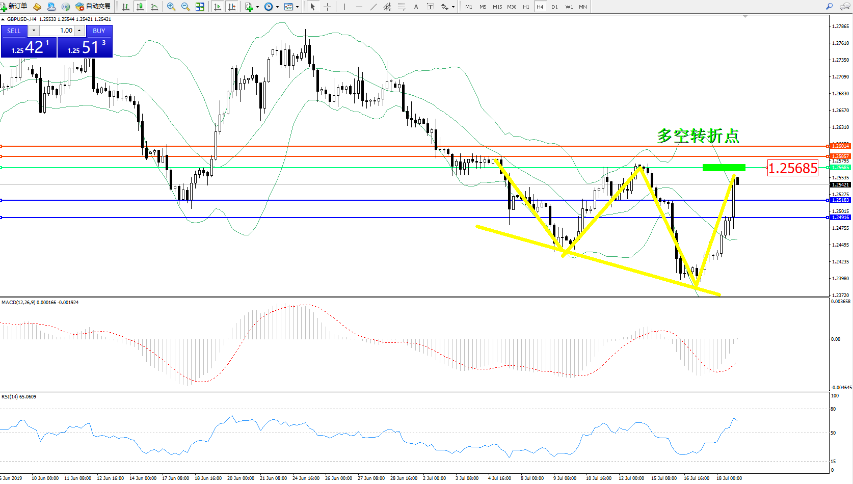 交易策略:1.25685下方看跌,目标1.25183、1.24916