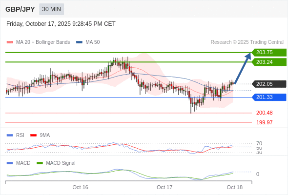 备选策略: 如跌破 201.33 ,GBP/JPY 目标方向定在 200.48 和 199.97 。