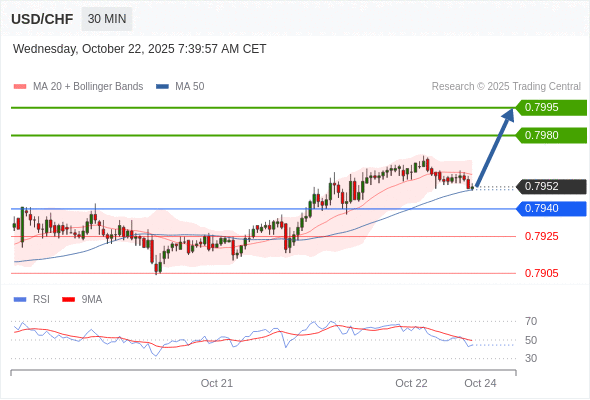 在 0.7940 之上,看涨,目标价位为 0.7980 ,然后为 0.7995 。