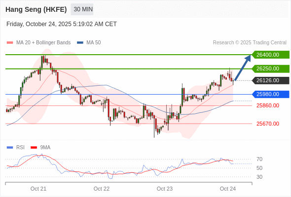 香港恒生指数期货 当日内: 在25980.00之上,看涨。