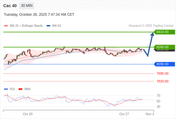 Cac 40 当日内: 上升趋势。