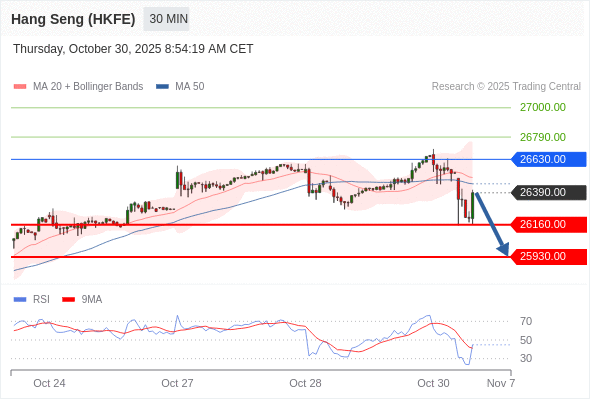 交易策略: 在 26630.00 之下,看跌,目标价位为 26160.00 ,然后为 25930.00 。