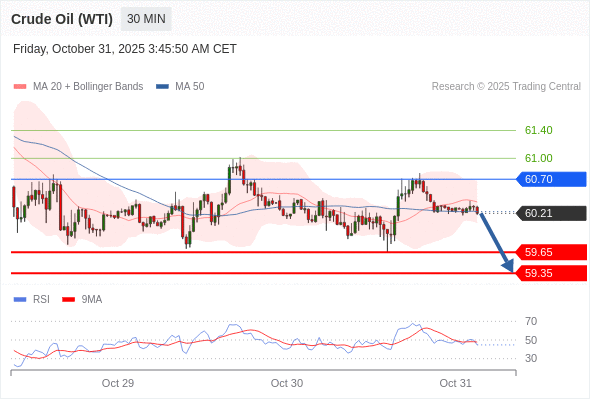 在 60.70 之下,看跌,目标价位为 59.65 ,然后为 59.35 。