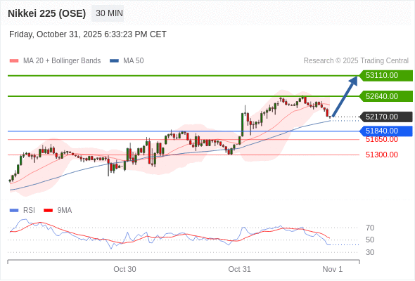 日经225股指期货 (OSE) 当日内: 超短线(当日内)支撑位在51840.00附近。