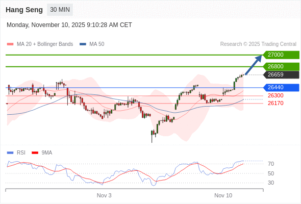 恒生指数 当日内: 目标为27000。