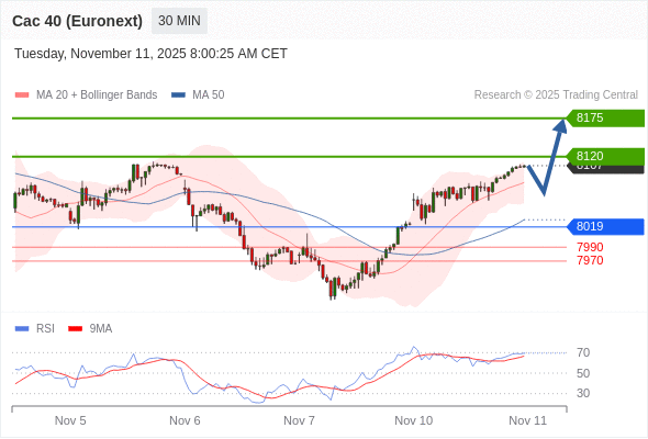 在 8019 之上,看涨,目标价位为 8120 ,然后为 8175 。