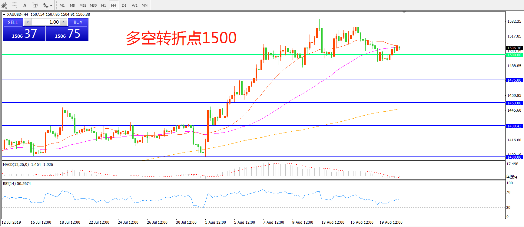 欧洲地缘政治动荡,意大利总理孔特周二发表讲话,宣布政府解散,且表示今日辩论结束后将向总统马塔雷拉递交辞呈。美联储降息预期以及来自欧洲的避险情绪推动了金价攀升,金价上从前一个交易日下跌逾1%的跌势中缓解出来,稳稳地站在1500关口之上,最终收报1506.02美元/盎司。在本周后半段全球央行年会之前,市场预计依然保持谨慎,以寻找未来利率走势的线索。