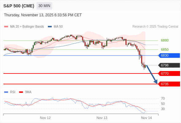 交易策略: 在 6830 之下,看跌,目标价位为 6770 ,然后为 6735 。