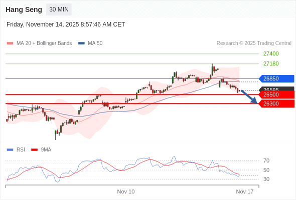 在 26850 之下,看跌,目标价位为 26500 ,然后为 26300 。