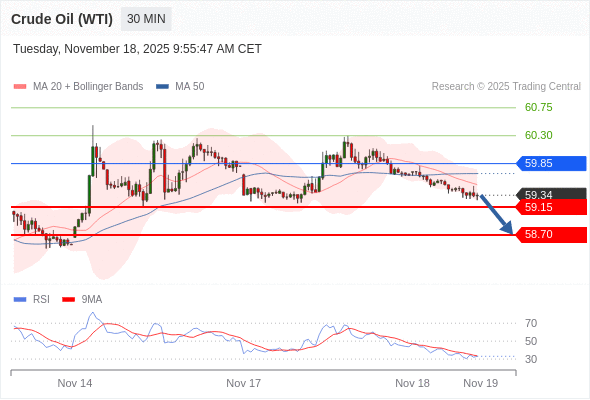 在 59.85 之下,看跌,目标价位为 59.15 ,然后为 58.70 。
