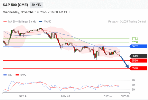 在 6682 之下,看跌,目标价位为 6590 ,然后为 6540 。
