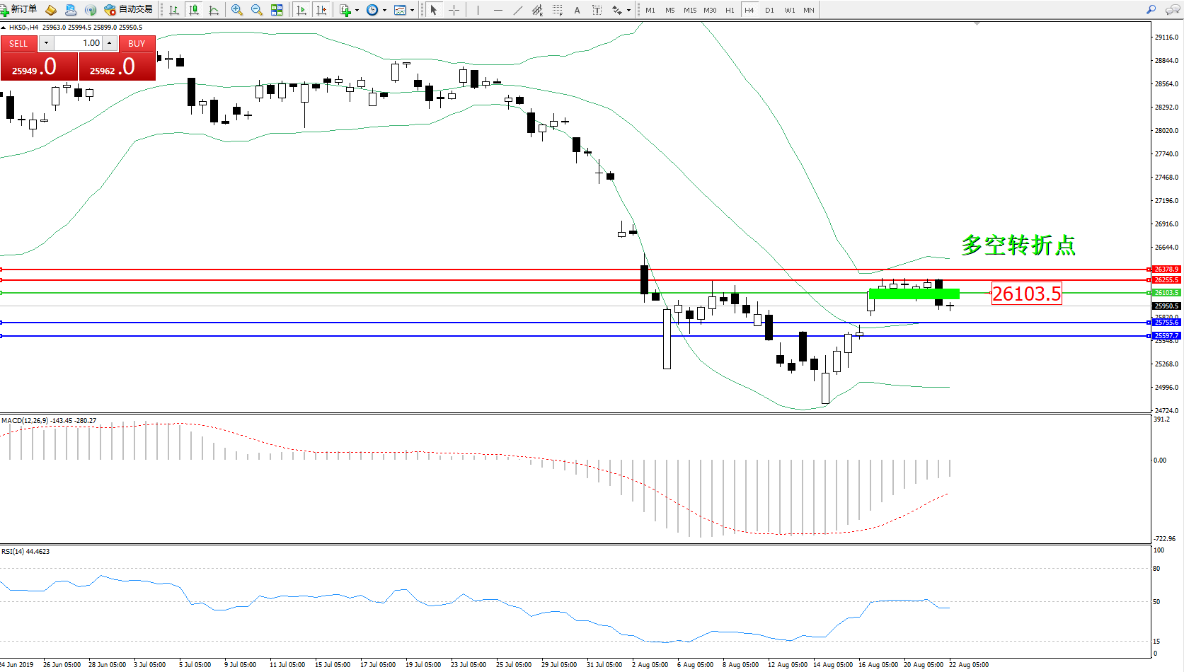 港股早上走高至26288后急速下行。卖盘涌现,急速回落,恒指低见26008,最多跌261点。再次迫近26000关口。美联储公布的7月会议纪要,确认上次减息只是货币政策的中期调整,不应被视为启动新一轮减息周期。接下来,市场还是重点关注本周五央行年会上鲍威尔的讲话。近期市场还是处于观望状态,当前整体的基调还是以偏稳为主。