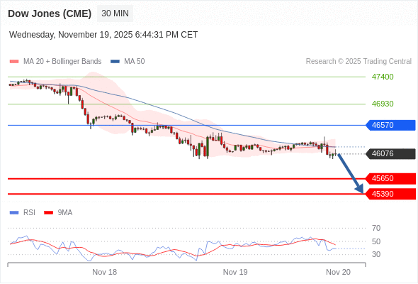 在 46570 之下,看跌,目标价位为 45650 ,然后为 45390 。