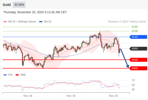 在 4110 之下,看跌,目标价位为 4030 ,然后为 4000 。