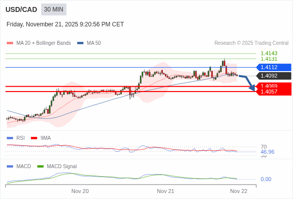 美元/加元 当日内 : 看跌,当 1.4112 为阻力位。