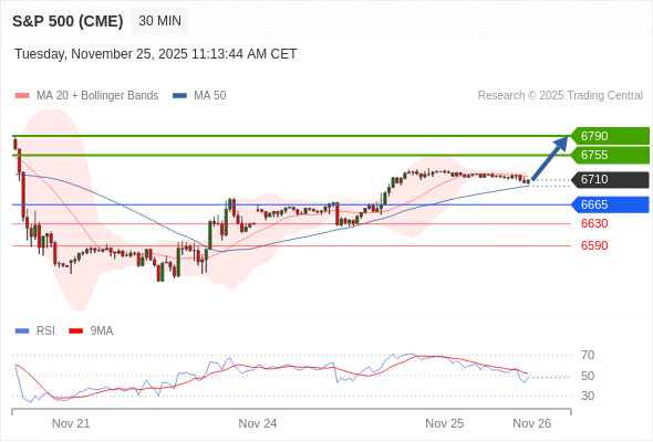 在 6665 之上,看涨,目标价位为 6755 ,然后为 6790 。