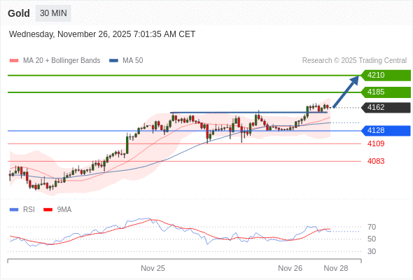 在 4128 之上,看涨,目标价位为 4185 ,然后为 4210 。