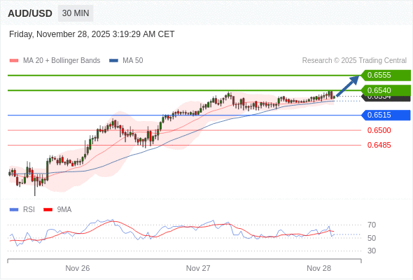 在 0.6515 之上,看涨,目标价位为 0.6540 ,然后为 0.6555 。