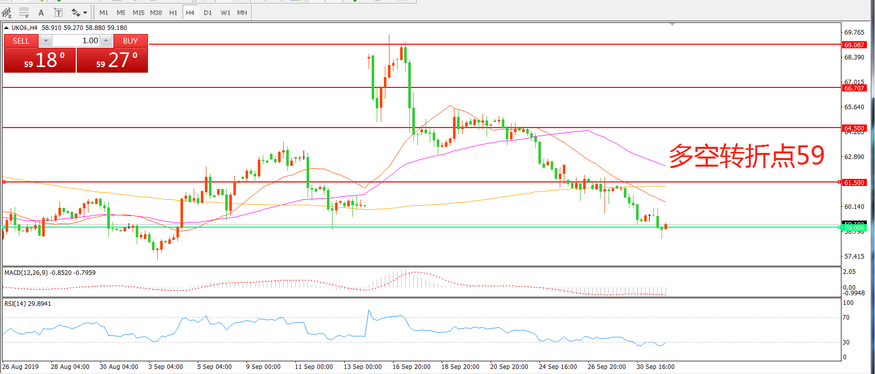 交易策略:在59.00之下看跌,目标57.00   55.00