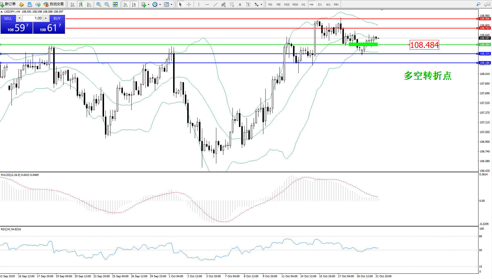全球贸易利多和英国脱欧乐观前景令避险货币日元的买需受压,但另一方面美元的持续疲软又限制了汇价上行,而美元兑日元在109关口也依旧面临着强大的趋势阻力;市场正在急切观望着本周英国脱欧局势的进一步进展。虽然脱欧协议表决遭到推迟,但眼下,英国硬脱欧的概率已经大大降低,10月31日之前突击达成协议的几率犹存。在此状况下,市场悲观情绪很难过度发酵,美元兑日元仍将在高位震荡后,伺机寻觅突破方向。