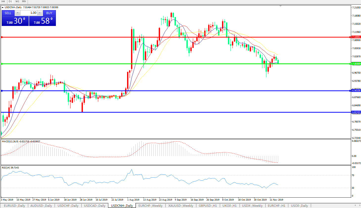 技术面简析:日图均线呈空头排列,汇价7.0关口附近窄幅整理,MACD运行于0轴下方且量能微收缩,RSI有再度走弱迹象,预计短期汇价将在7.0关口附近整理,中期汇价需等待美元指数及中美贸易谈判进展指引。