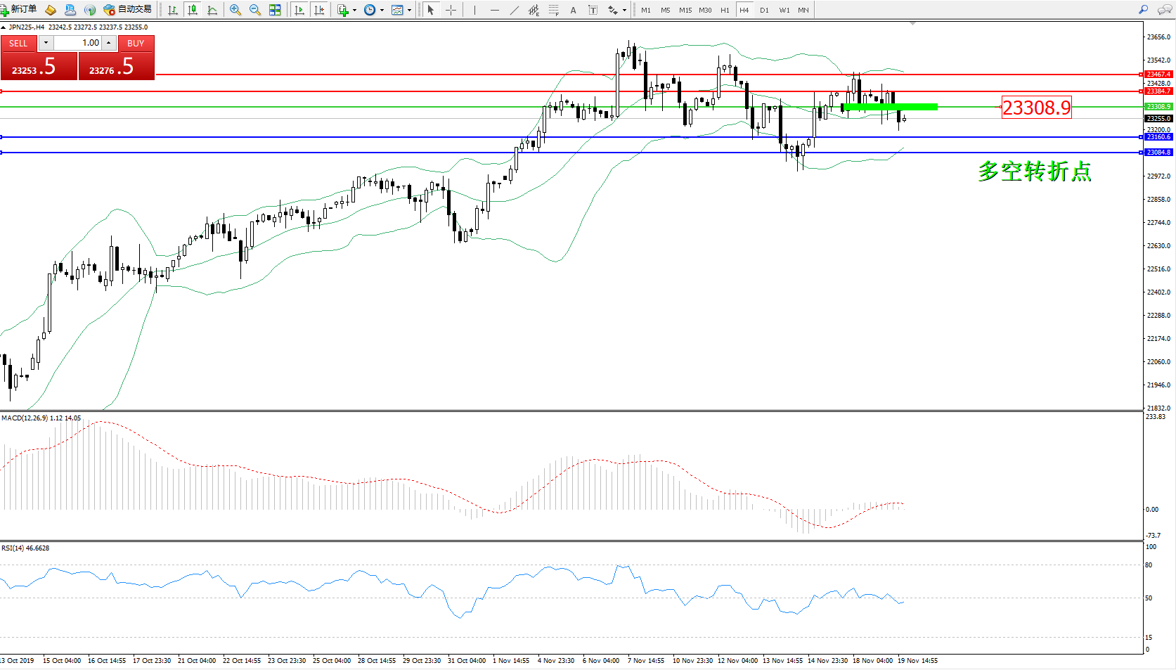日经指数JPN225——4小时K线图: