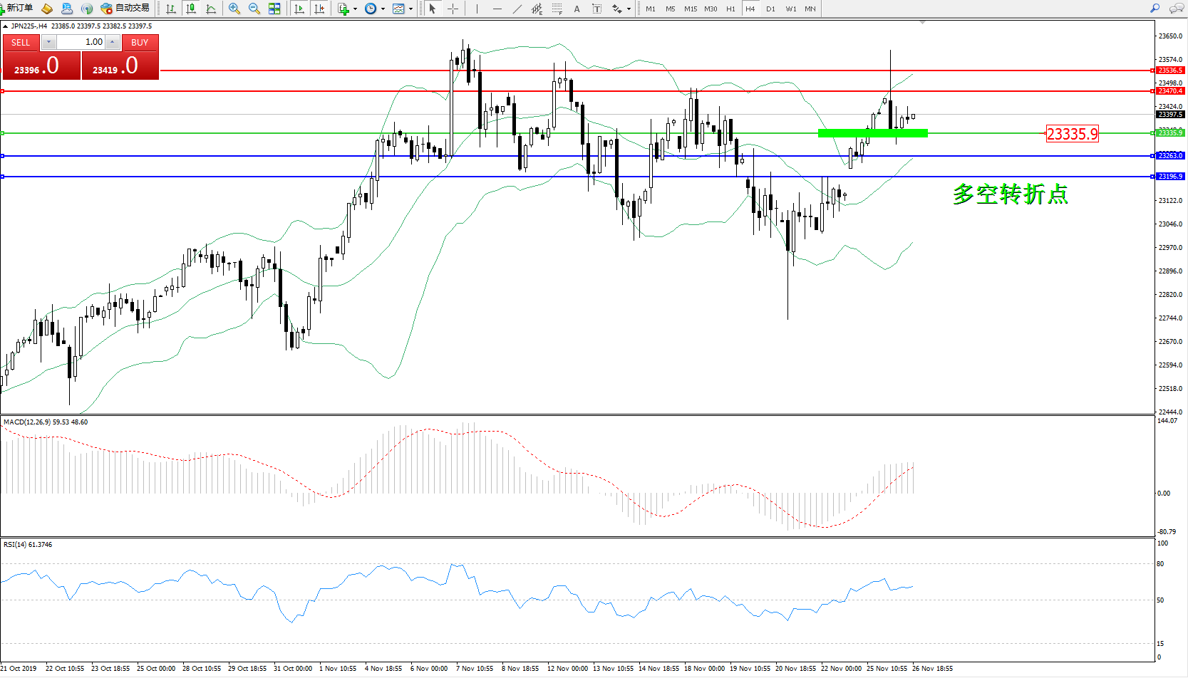 日经指数JPN225——4小时K线图: