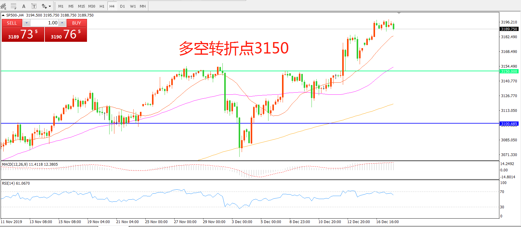 4小时图看,标普500长阳拉升后延续高位震荡,整体涨势有所放缓,均线系统呈多头排列,MACD红柱增加,RSI指标走平,日内延续上行概率较大。
