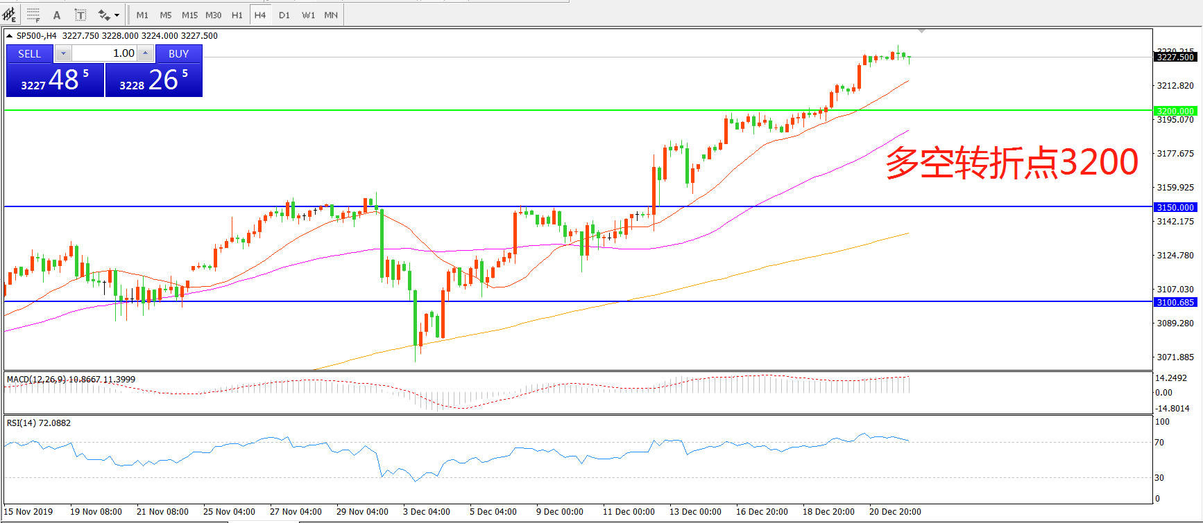 周一(12月23日),对于贸易谈判的乐观预期依然对市场情绪形成提振,标普500收盘再创新高,报3226.98点。尽管美国总统特朗普被美国众议院弹劾,但金融市场对此反应冷淡,本周三是圣诞节,美股将会休市,周二美股将提前收盘。通常圣诞节所在的这一周市场波动性较低,股指倾向于区间震荡。