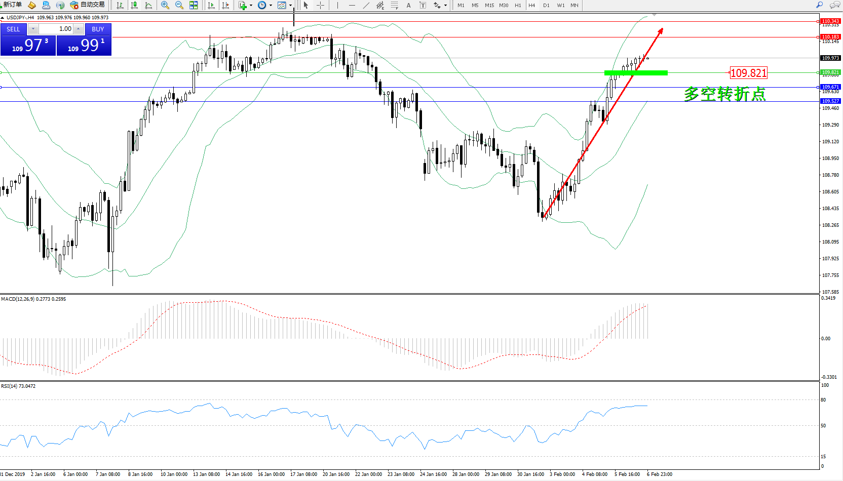 美元兑兑日元升至美元兑日元上涨0.15%至109.99两周高位,因近期美国经济数据强劲,且对公共卫生事件的担忧有所缓解;美国1月份非农可能并不令人兴奋,但也不应该令人失望。美国1月份工资数据若意外乐观,可能会在一定程度上平息市场对美国第一季度GDP增速放缓的担忧,美联储降息的最小几率也可能下滑,这给美元兑日元突破109.70阻力区域,并接近110.30峰值创造机会。
