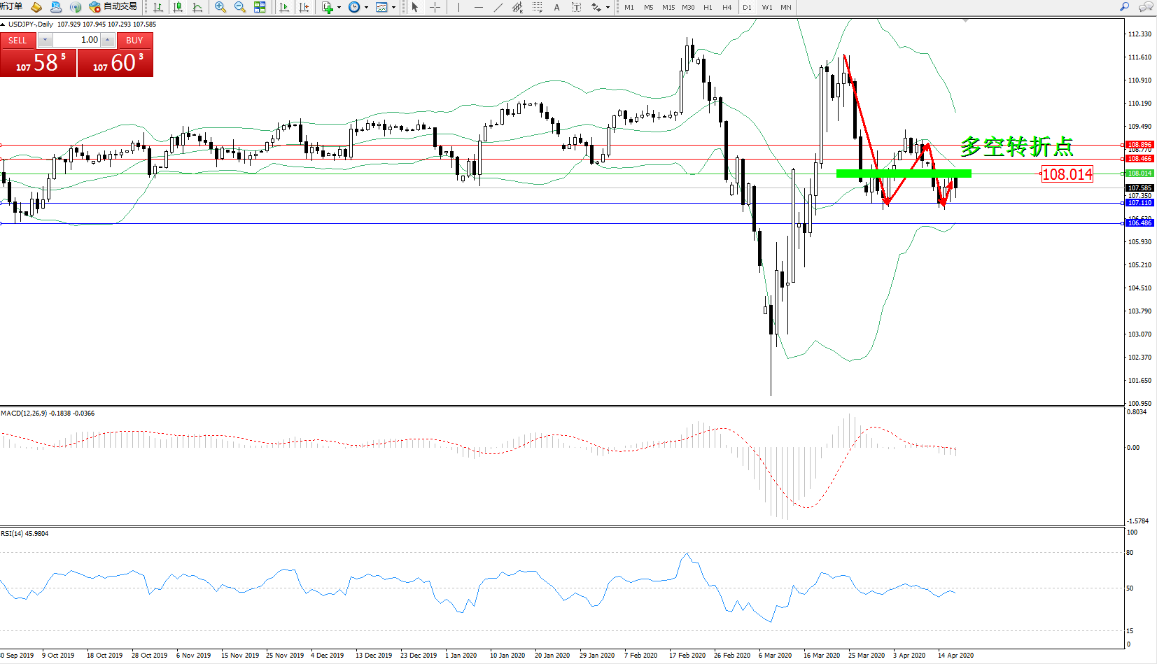 美元兑日元跌0.35%107.54;全周跌0.8%,周低点106.93是近期支撑。日本首相安倍晋三表示日本仍未达到减少接触的目标。之后投资者稍加留意日本的商品贸易帐。日本央行行长黑田东彦在最近的讲话中给日本经济拉响了警报。疫情的蔓延正在对日本的经济产生严重影响,经济前景极为难料。日本央行会在427-28的政策会议上发布最新价格和经济前景预期。届时大幅下调预期的可能性很大,尤其是考虑到首相安倍晋三本周已宣布部分地区进入紧急状态后就更是如此。紧急状态所覆盖地区的经济产出占到日本经济总产出的一半。本季度日本经济会出现两位数的萎缩。