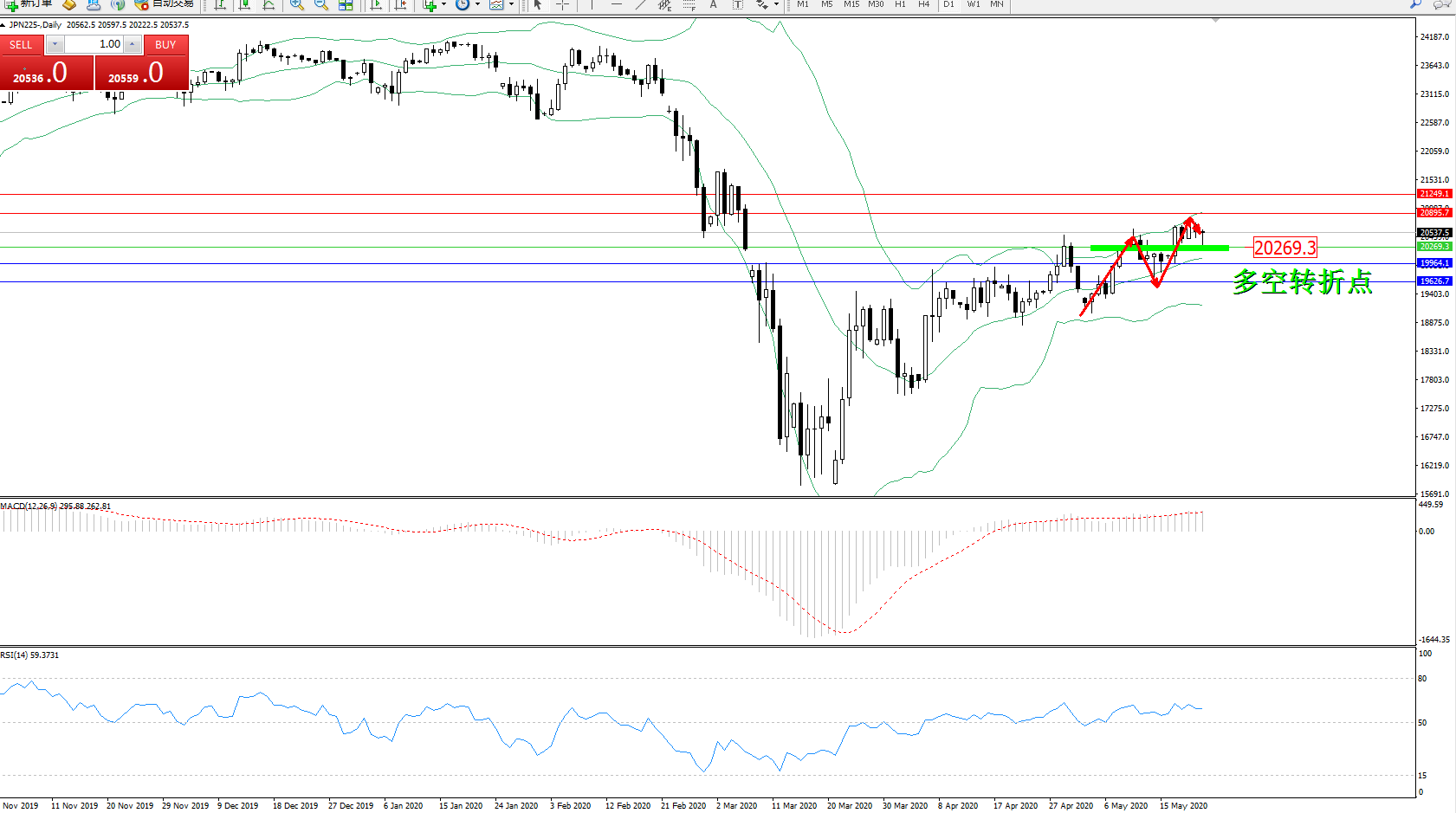 日经225指数5月22日(周五)收盘下跌165.31点,跌幅0.80%,报20387.00点。日本央行推出了一项新的贷款计划,以支持在疫情期间陷入困境的小企业,但没有增加大规模刺激措施。日本央行维持政策利率和资产购买规模不变,同时敲定了行长黑田东彦上个月要求员工拟定的贷款计划的细节,商品货币集体承压,日内亚洲股市大跌,大宗商品大幅下跌,场对国际贸易局势的担忧情绪升温、疫情二次爆发担忧情绪等因素,全球股市大幅下跌,打压全球经济前景预期,就目前而言,日本央行的侧重点已经转向预防破产、挽救就业以及防止经济衰退演变为金融危机。六月开始新的借贷项目,特别计划规模约为75万亿日元。