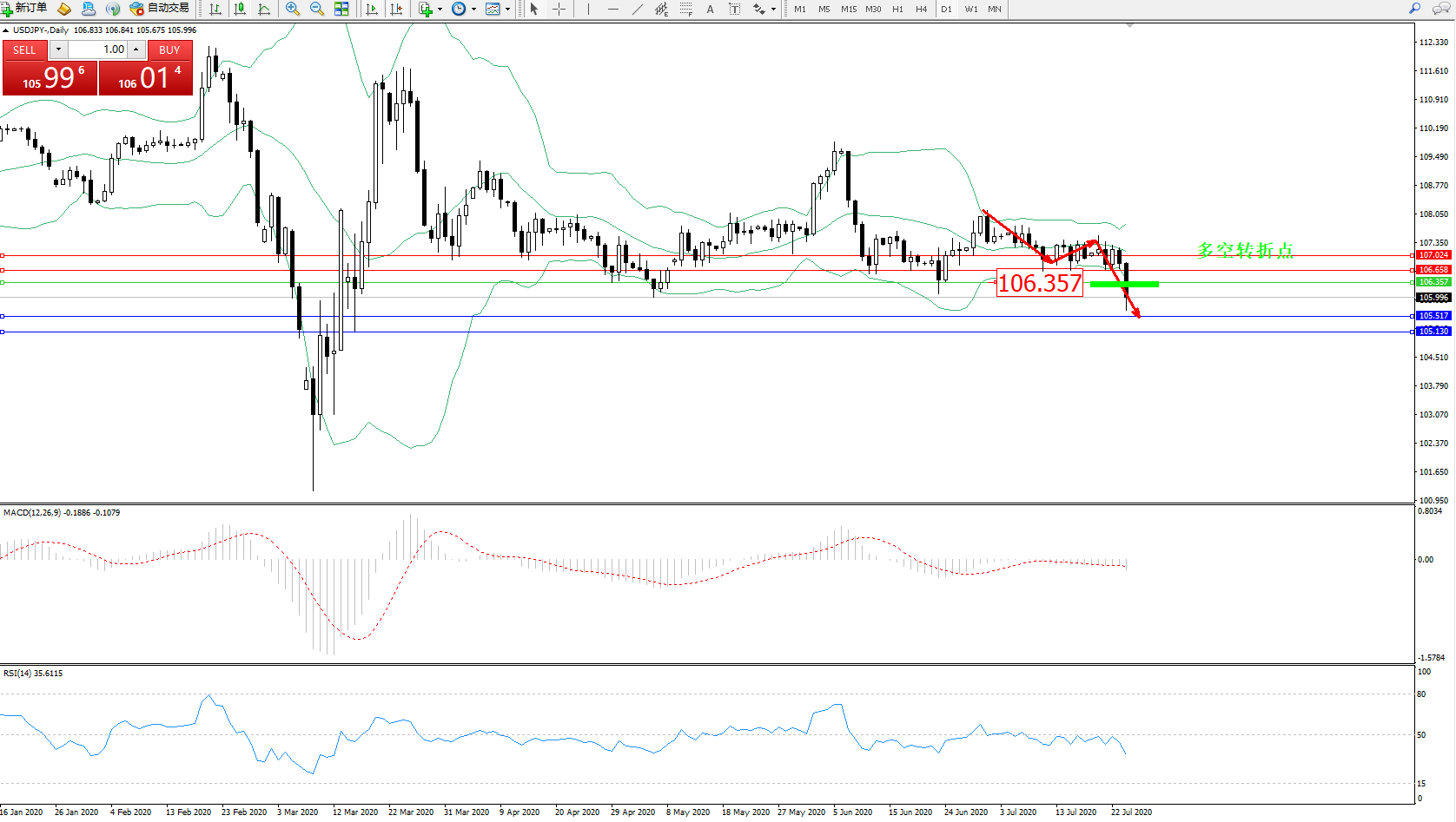 技术点评:经过长时间维持在布林带指标中下轨区间持续窄幅整理数日后,空头动力终究还是破位下行,延续布林带指标下轨强势下探中,布林带指标呈张口走势中,且跌势或将持续数日,前期整理区域已然成为关键压制节点,MACD指标处于0轴线下方空头区域持续整理后开始有下行态势,RSI指标处于50均衡线下方维持数日整理后空头动力强势下探;