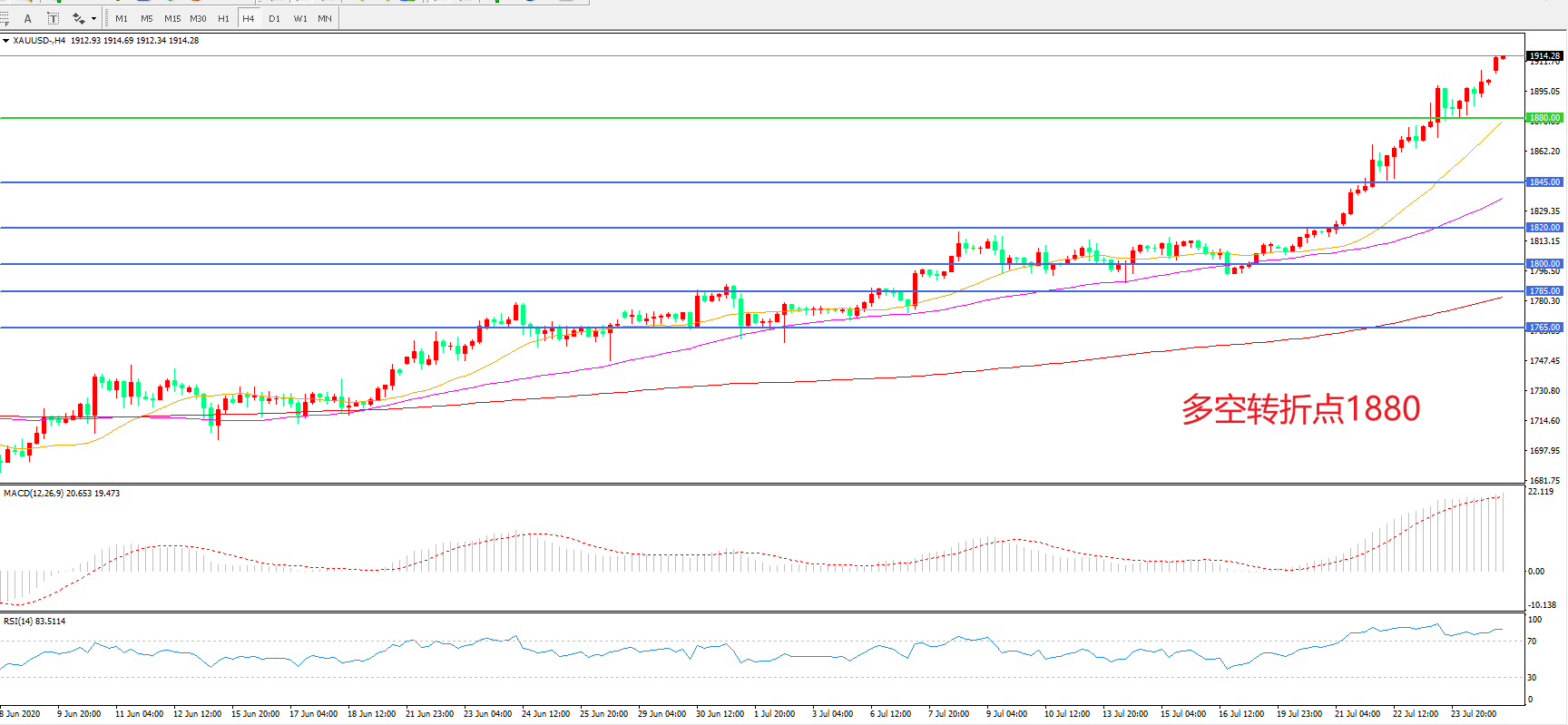 交易策略:在1880.00之上看涨,目标1920.00 1950.00