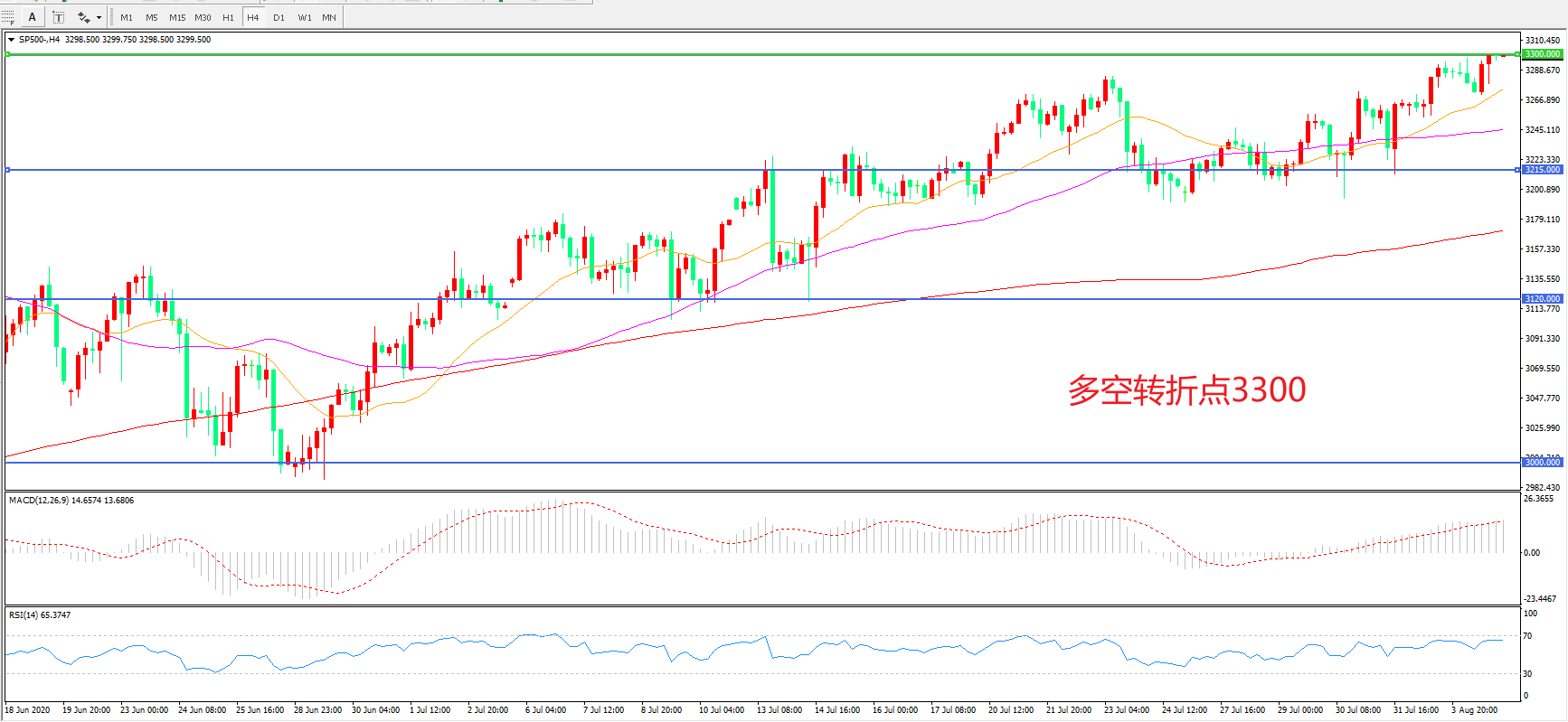 周二(8月4日),投资者关注企业财报及一轮经济刺激法案进展,标普500大幅拉升,收报3299点。虽然疫情防控形势严峻,但美国新增新冠肺炎确诊病例数量有所下降,连续第二天低于5万,白宫官员和美国国会民主党领导人继续就新一轮刺激计划展开磋商,能否顺利推出是近期市场最关心的事件。