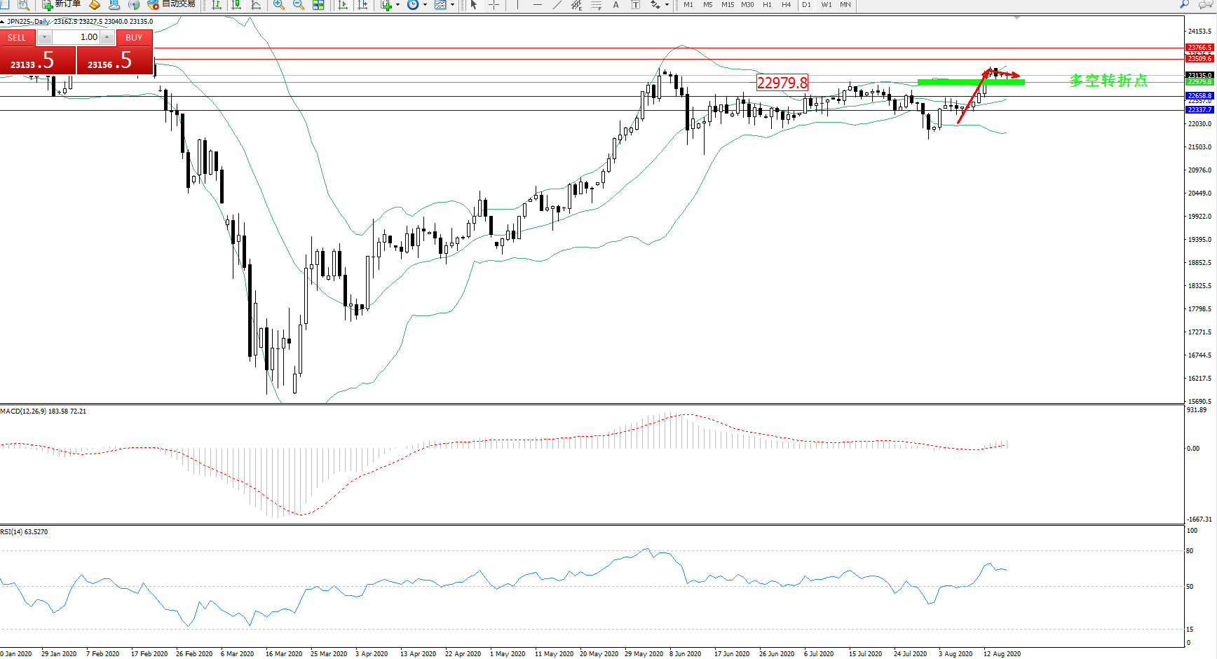 日经225指数8月17日(周一)收盘下跌167.86点,跌幅0.72%,报23121.50点。日本第二季经济创纪录最大萎缩,因新冠疫情打击消费和出口,令决策者面临压力,需要采取大胆行动以防衰退加深;连续三个季度的经济萎缩导致日本实质GDP降至十年低位,日本首相安倍晋三从2012年底开始实施“安倍经济学”所带来的成果化为乌有;尽管5月末封锁措施取消后,经济从低谷回升,但很多分析师预计7-9月经济增长的任何反弹都将是温和的,因为疫情卷土重来令消费者收紧开支;周一公布的政府数据显示,日本4-6月GDP环比年率为萎缩27.8%,为1980年有可比数据以来的最大降幅,而且降幅略大于市场预估中值27.2%。