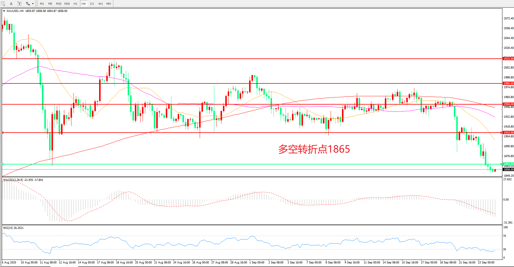 交易策略:在1865.00之下看跌,目标1835.00   1800.00