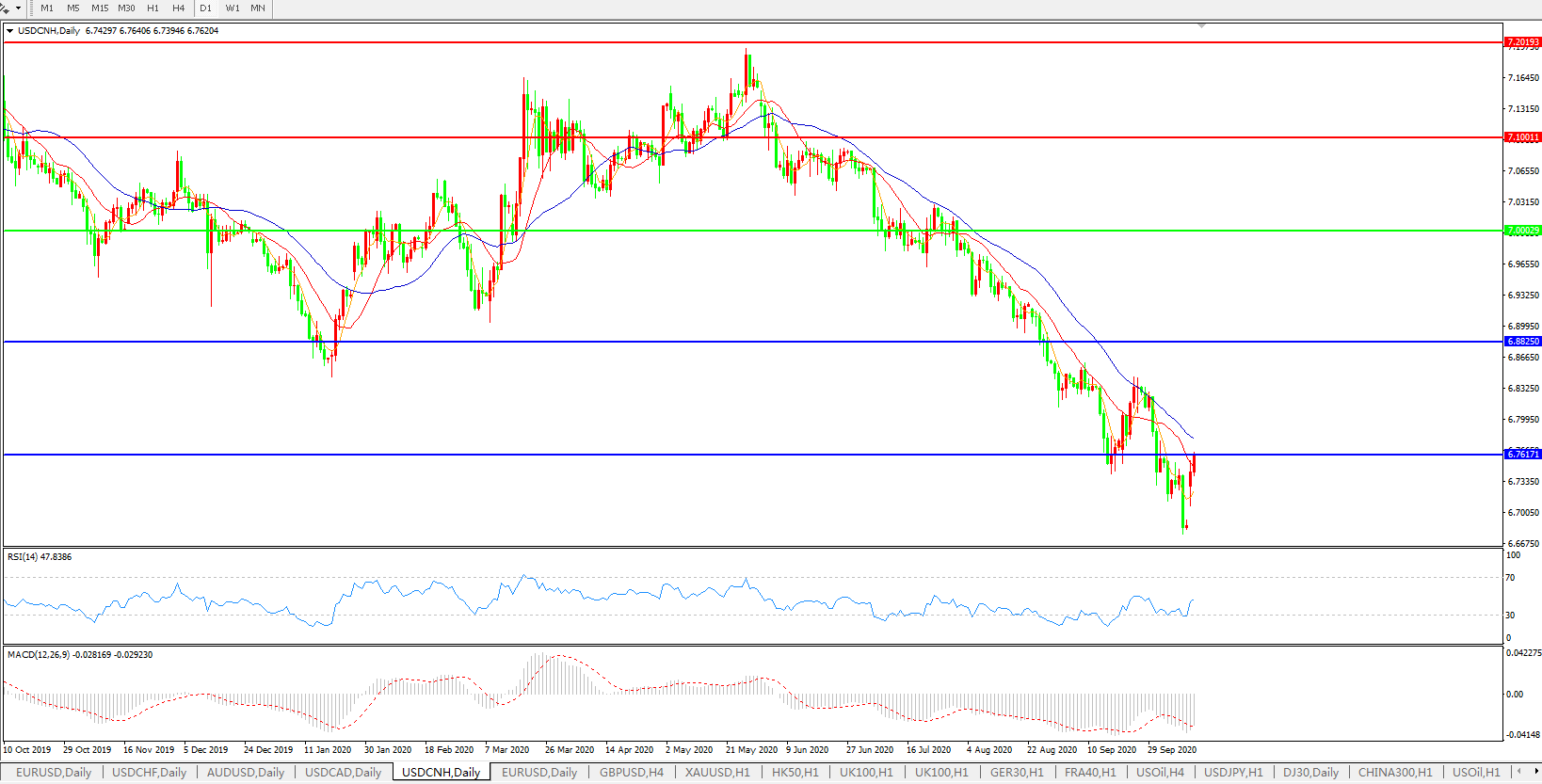 美元兑人民币USDCNH    日线图: