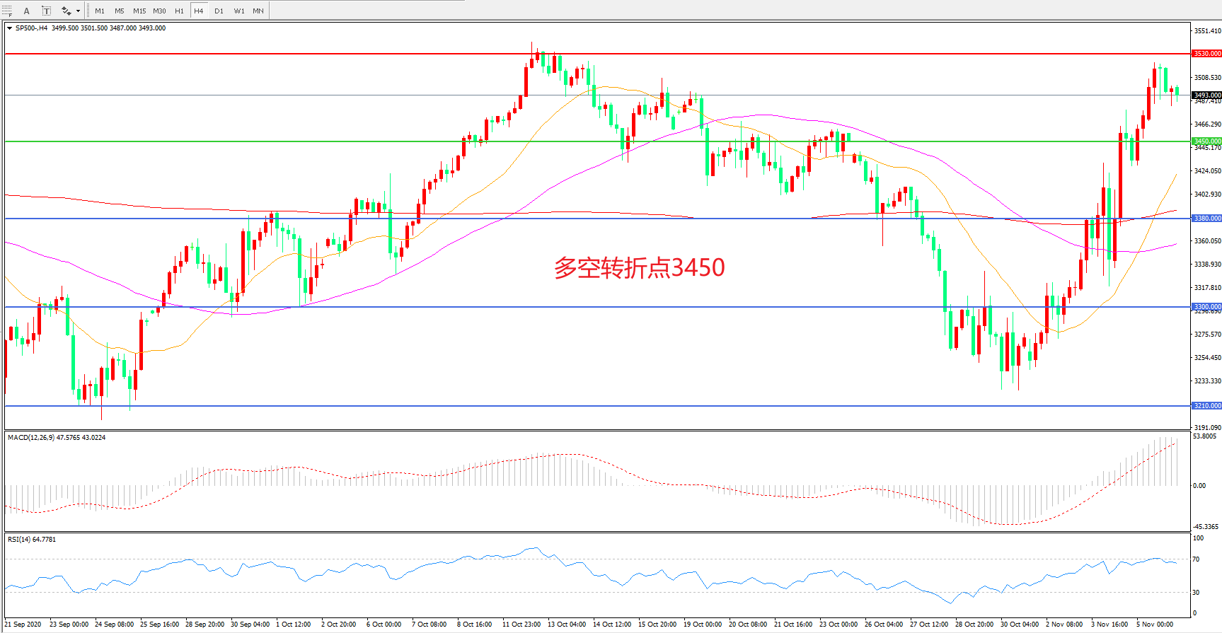 多空转折点:3450.00
