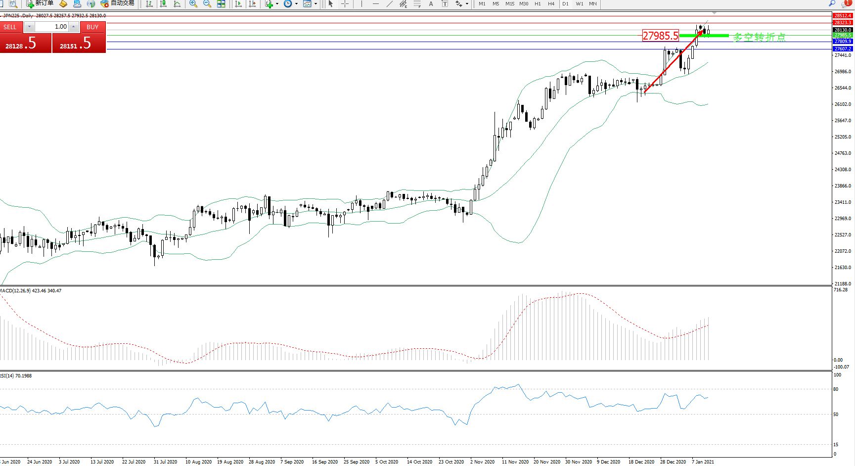 日经225指数1月12日(周二)收盘上涨45.97点,涨幅0.16%,报28185.00点。日本有消息称东京奥运会将取消,“东京奥运会取消”词条再一次登上热搜。1月12日,新京报记者就此采访东京奥运会和残奥会组委会,其回应,东京奥运会仍计划于2021年7月23日开幕,现阶段准备工作正在稳步进行中。日本央行:12月衡量家庭当前对经济情绪的指数较三个月前有所改善。88.5%的受访家庭表示,与2020年3月相比,他们在休闲、娱乐相关的外出活动上花费的时间更少,66.6%的受访家庭表示计划在未来花费更少的时间。在12月份的调查中,60.5%的家庭表示物价较上年同期上涨,9月份为65.9%。据日本共同网:日本政府12日基本决定,13日将基于新型冠状病毒特别措施法向京都、大阪、兵库关西3府县再次发布紧急事态宣言。