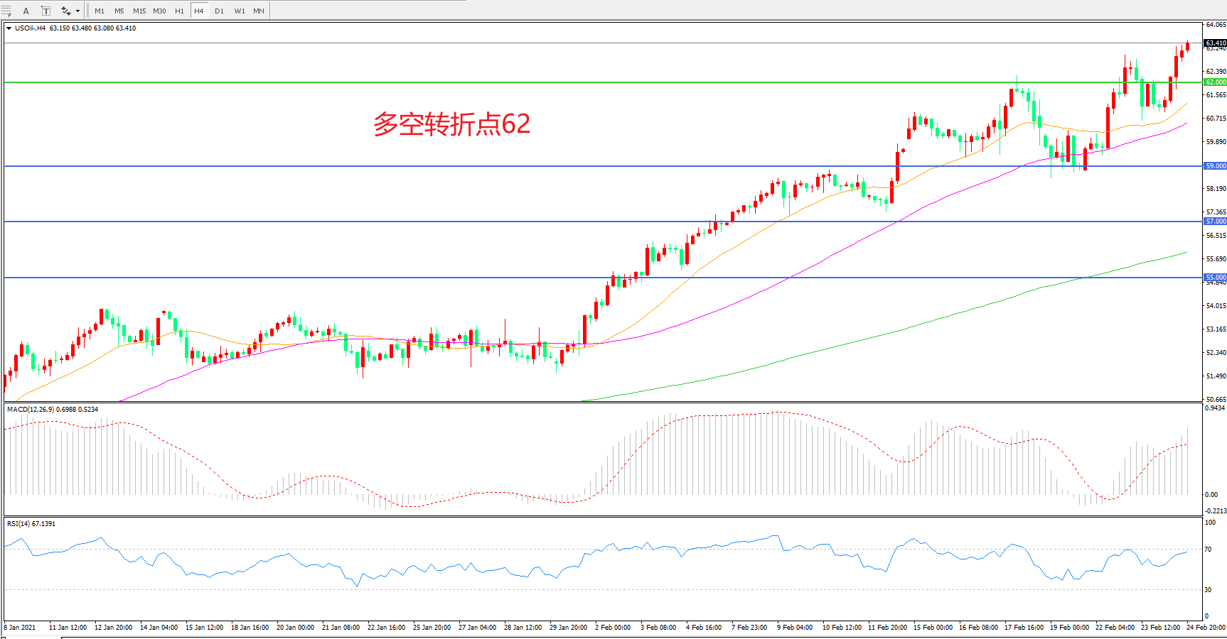 多空转折点:62.00