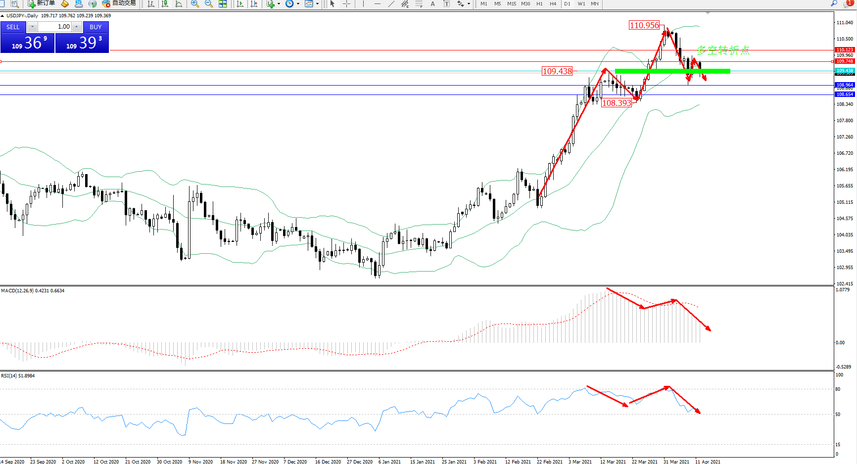 技术点评:多头动力延续布林带指标中上轨区间通道持续震荡上扬,高位抵达110.956位置遇阻回撤,跌破布林带指标中轨附近节点后维持宽幅震荡,布林带指标呈张口走势后开始缓慢收口,关注中轨附近节点,MACD指标处于多头区域高位震荡回撤,RSI指标高位持续回撤下行即将触及0轴线附近节点;