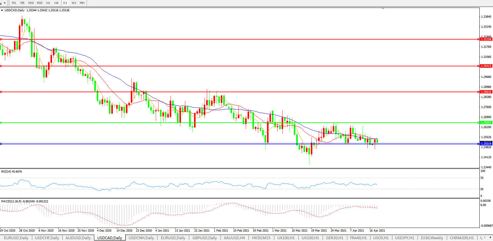 美元兑加元USDCAD 日线图: